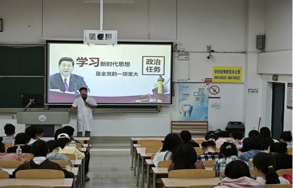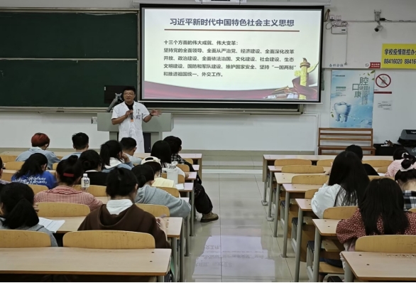 夏冰以中国共产党自光荣诞生以来面临的种种艰难险阻为例,向同学们说明了作为新时代青年,无论在学习中还是生活中,都要不畏艰难困苦,勇于开拓创新。之后他从十个明确、增强“四个意识”,坚定“四个自信”,做到“两个维护”等方面,向同学们详细解读了习近平新时代中国特色社会主义思想。