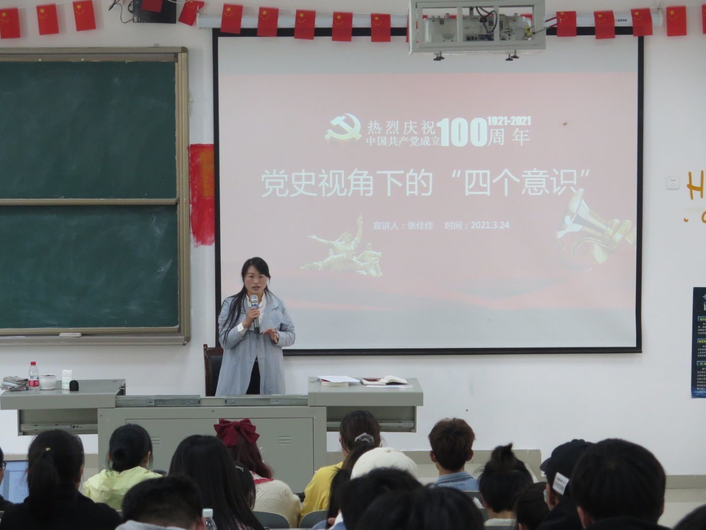于南校区4501教室进行党史视角下的“四个意识---学四史,庆祝建党100周年”党史学习主题教育,本次党史学习主题教育由张佳佳老师主讲,吉祥体育