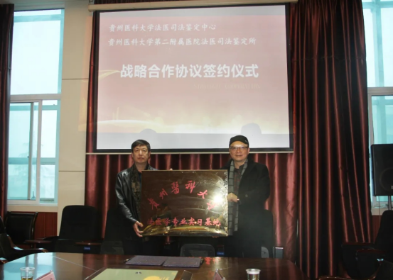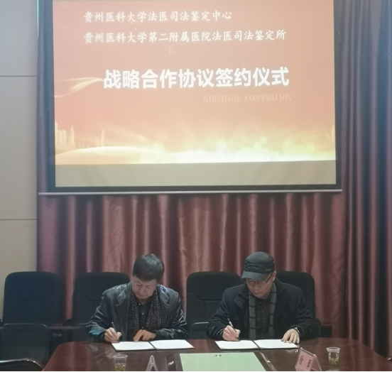 达成战略合作关系,在贵医大二院行政四楼会议室举行签约仪式,双方以“优势互补、服务公益、促进黔东南州司法鉴定工作发展”为宗旨,达成战略合作。