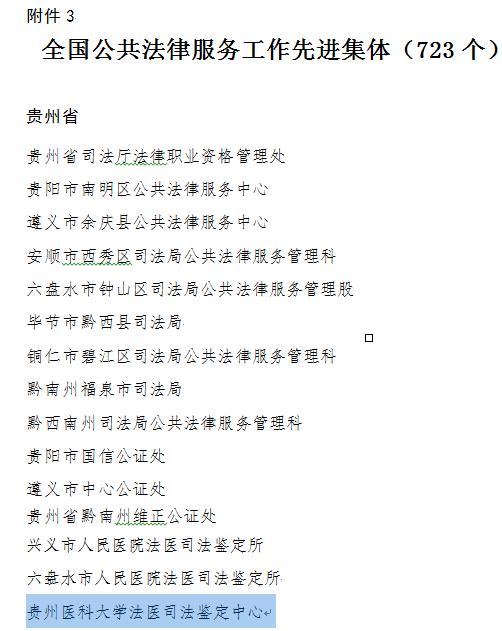 我校法医司法鉴定中心荣获“全国公共法律服务工作先进集体”称号