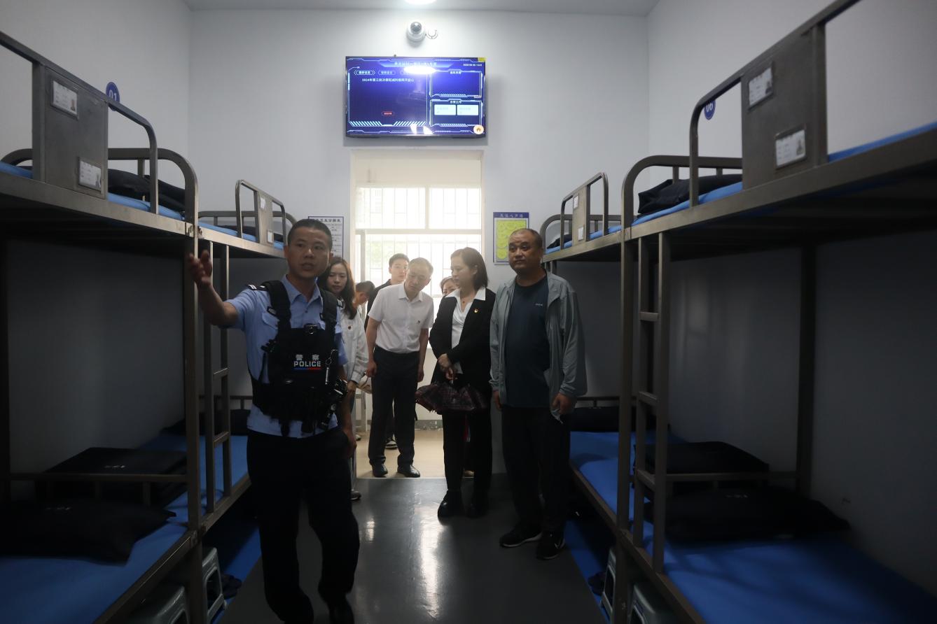 活动中,在管教所工作人员引导下,大家有序参观技能培训中心和监狱宿舍环境。