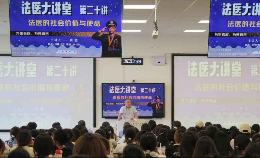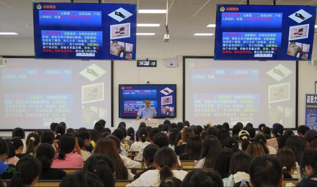 讲座中,龚胜以“回到母校”的亲切感受开场,迅速拉近与师生的距离。围绕“法医的社会价值与使命”主题,他首先抛出“法医是什么样的”这一问题,引导同学们思考,随后结合多个经典案例,生动展示了公安法医的日常工作内容。