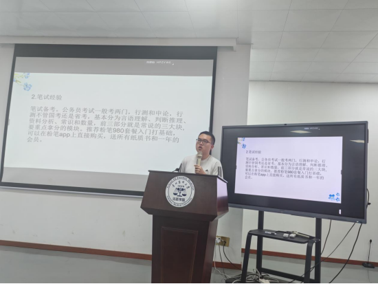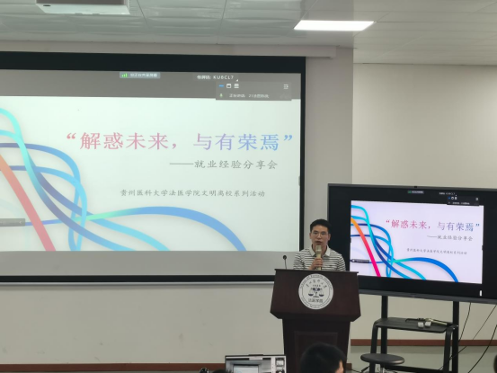 在北校区法医楼多功能阶梯教室举办了“解惑未来、与有荣焉”就业经验分享讲座。此次活动邀请了2024届毕业生杨丽、郑好、成宇、陈蔼、陈芸芸、李政懿六位同学分享就业经验。讲座由吉祥体育