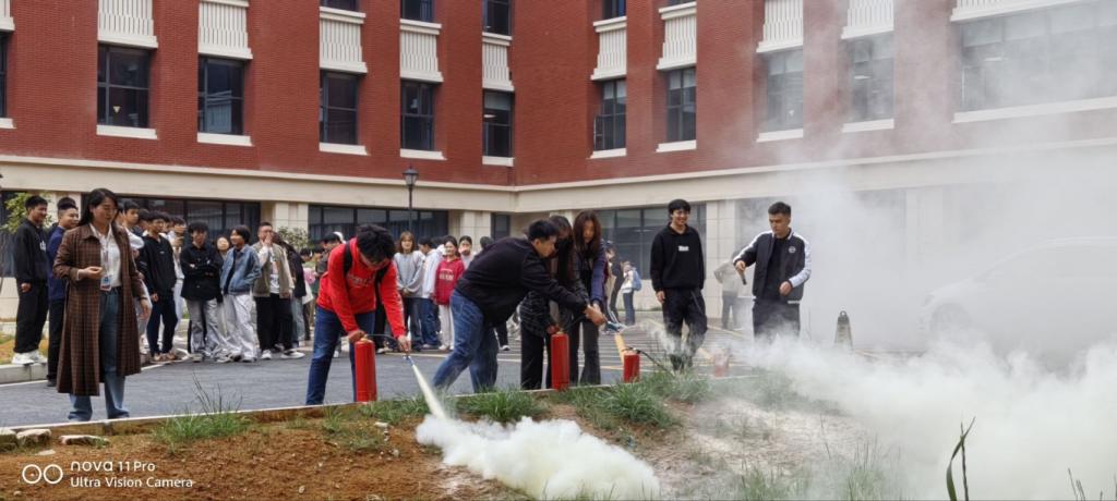 在学习灭火器使用的教学环节,徐老师向同学们详细介绍了不同类型的灭火器,并示范了正确的操作步骤。同学们亲自体验了使用灭火器灭火的过程,通过实际操作,更加深入地了解了灭火器的使用方法。