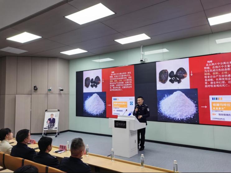 讲座结束后,宣讲团警官带领同学们参观仿真毒品模型,为大家重点普及毒品的外观形态、滥用方式、成瘾机制等相关知识,结合具体案例深刻揭示毒品对个人、家庭以及社会带来的危害,达到教育警示的目的。