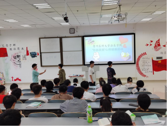 在X4205教室组织举办了“你画我猜”心理健康教育主题活动。本次活动由2022级法医班心理委员杨京窕主持,2022级全体同学参与。