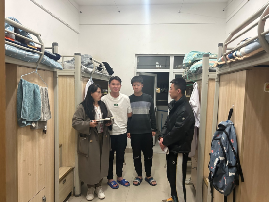 南北校区的学生寝室进行安全、卫生及考试复习情况检查活动,并对每一间宿舍的所有同学逐一进行了心理健康状况摸排,及时了解学生们在新学期的心理健康情况,以更好地开展学生工作。