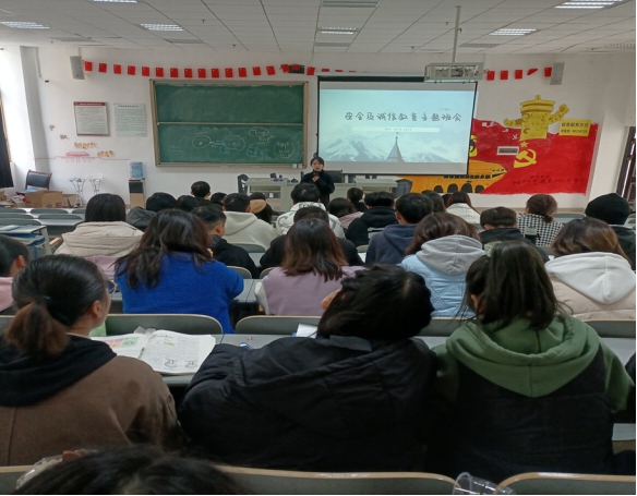 首先,杨晖副书记强调,在学好专业知识的同时要注意个人身心健康的全面发展,既要学好专业知识的同时也要加强对身体的锻炼。在日常生活学习中,不能违规使用高功率电器,要加强对个人财产的保护,增强意识自我个人财产保护意识。通过学习了解安全知识,增强自身自护、自救意识。杨晖副书记强调,努力加强自身学习,树立自护、自救观念,形成自救、自护与诚信考试的意识,塑造诚信品质。随后,张佳佳老师对学生诚信考试做出了补充强调。诚信考试是立人之本,弘扬诚信之风,积极响应学校的号召,为学校良好的考风共同努力,为严谨考风考纪撑起一道诚信、文明、自觉、向上的美丽风景线。