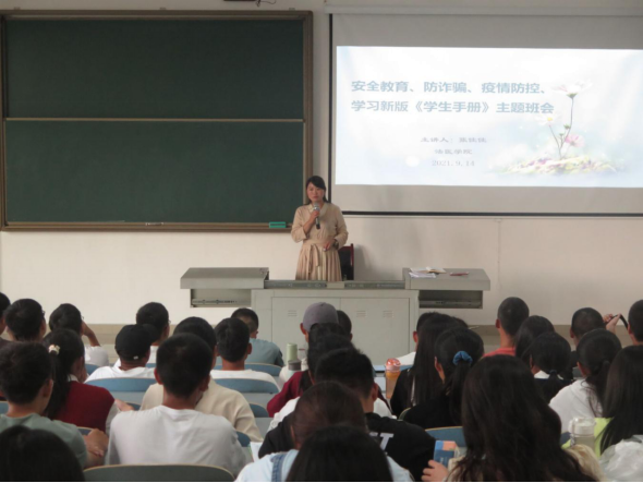 2018级、2019级、2020级以及2021级全体学生参与此次班会,主讲人为辅导员张佳佳老师。