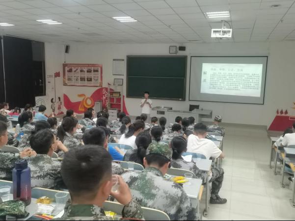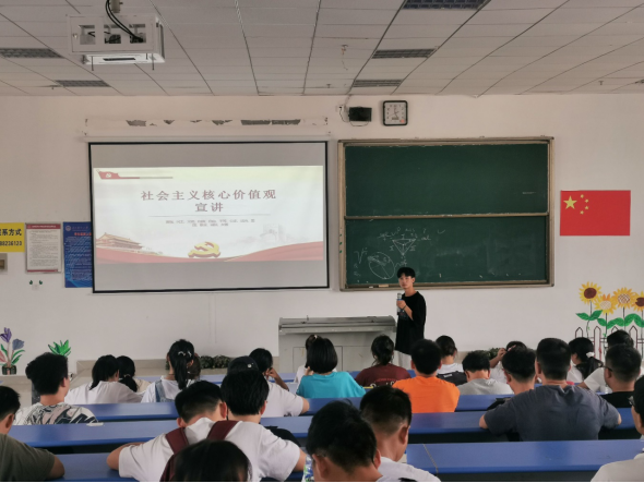 宣讲人冉乾冲从提出背景,核心原则,指导思想,重大意义四个方面进行宣讲。在社会主义核心价值观内容中富强,民主,文明,和谐是国家层面的价值目标;自由、平等、公正、法治是社会层面的价值取向,爱国、敬业、诚信、友善是公民个人层面的价值准则。