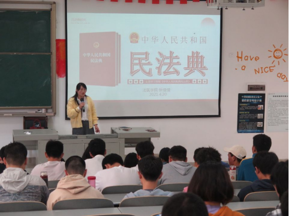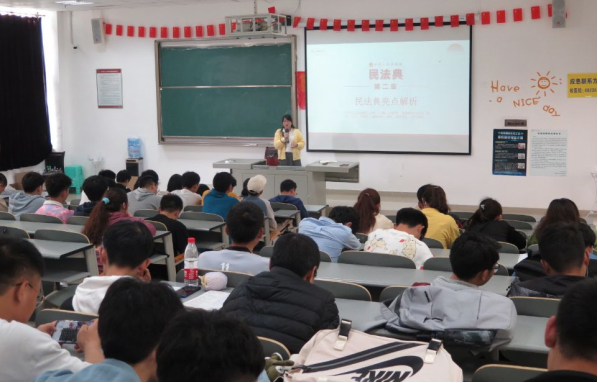 于明理楼7207教室开展《中华人民共和国民法典》的学习教育,旨在于加强同学们对《民法典》的了解、认知。学会使用法律武器来维护自身的合法权益,树立法律意识,提高法律素养。本次学习教育由吉祥体育