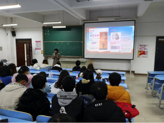 在网络安全教育的讲授中,张佳佳通过身边给大家敲响警钟,向大家阐述了“不传谣”、“不轻信”的网络行为规范。在校园活动介绍中为大家推荐了“学雷锋活动”、“校园公益活动”、“我推荐、我评议身边好人”活动、“2021第十七届挑战杯”等活动,并呼吁大家积极参与。最后,号召大家积极参与对国家历史、民族精神的学习与传播。