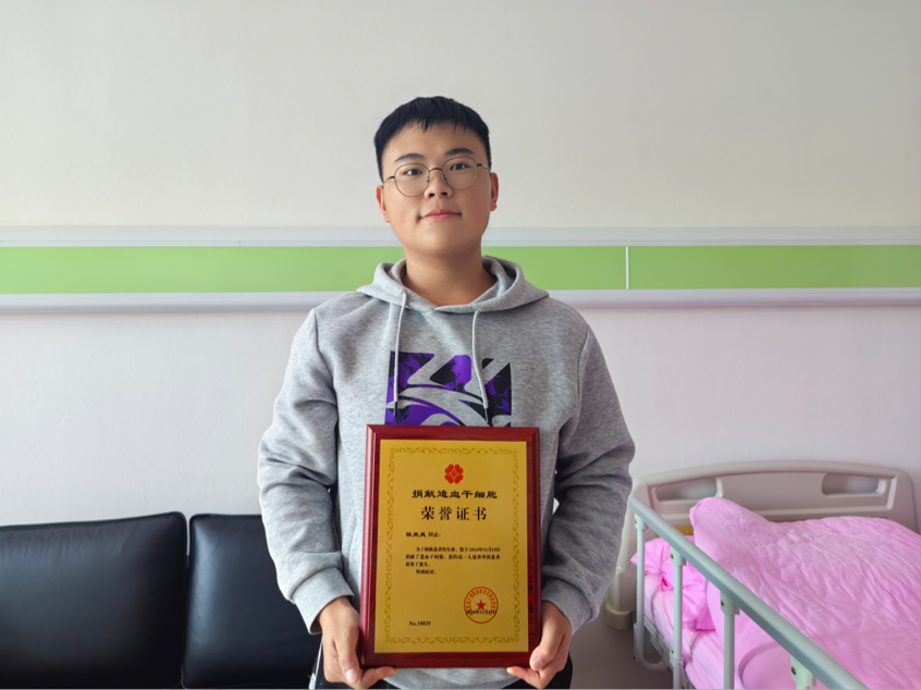 大四的一名学生,在2022年6月了解到造血干细胞捐献后,便决定成为一名造血干细胞捐献者。今年10月,在收到初筛配型成功的通知后,陈爽爽同学感到很高兴,毫不犹豫同意捐献。他说:“捐献造血干细胞意味着给患者带来生的希望,这是一件很有成就感和自豪感的事。”