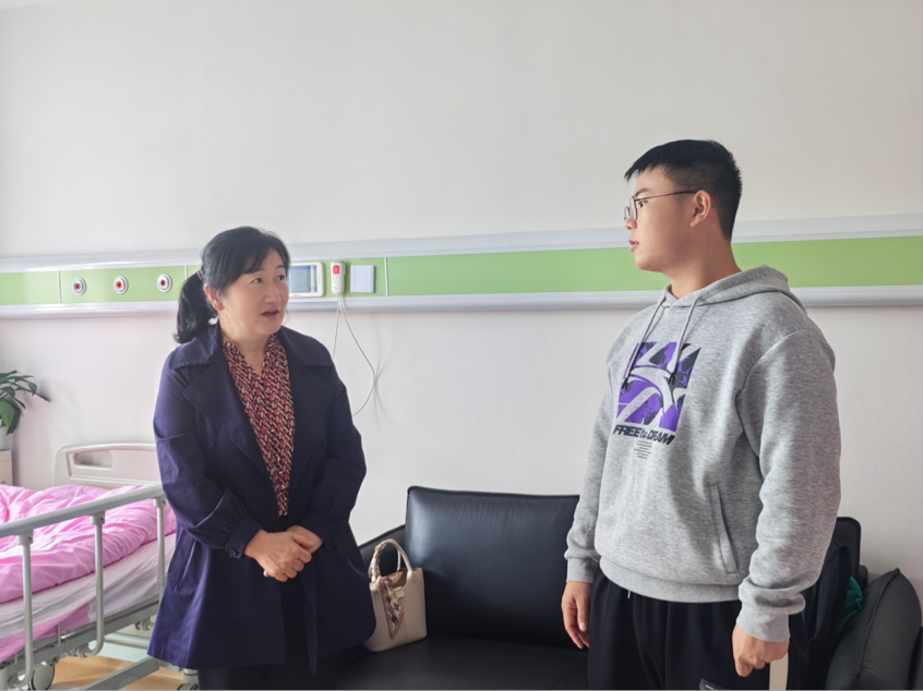 党委书记封韬携学生科科长郑艳华、分团委负责人季晶焱及2024级法医班班主任何军臣进到贵州省人民医院住院病房看望陈爽爽同学,并献上鲜花及营养品,表示关心及慰问。同时对于陈爽爽同学捐献造血干细胞行为给予高度评价与肯定。
